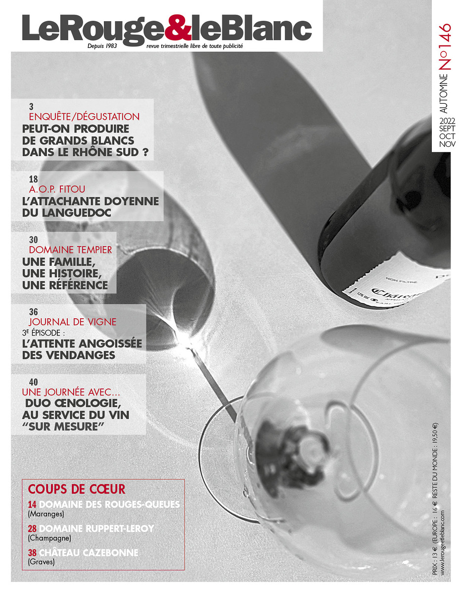 Nos reportages sur les grands blancs du Rhône Sud, ou sur l’A.O.C. Fitou publiés dans ce numéro - venant après nos dossiers sur le carignan (R&B n°137), ou sur l’irrigation (R&B n°145) - nous en ont convaincus : il existe dans le sud de la France des cépages qui, sans être tous de vrais autochtones, se sont assez bien adaptés au fil des siècles à son climat et à ses terroirs pour produire de bons vins, même par forte chaleur ou grande sécheresse. Ils ont pour noms cinsault, carignan, mais aussi counoise, terret noir, muscardin ou picpoul noir pour les rouges, et bourboulenc ou picpoul blanc pour les blancs et la liste n’est pas close. Leurs ceps étaient encore nombreux il y a un demi-siècle, puis ils ont disparu de nos terres au cours des trente dernières années du XXe siècle, chassés par la récupération de la notion d’AOC par l’agriculture productiviste et par l’utilisation des cahiers des charges comme bras armés de l’uniformisation des pratiques.